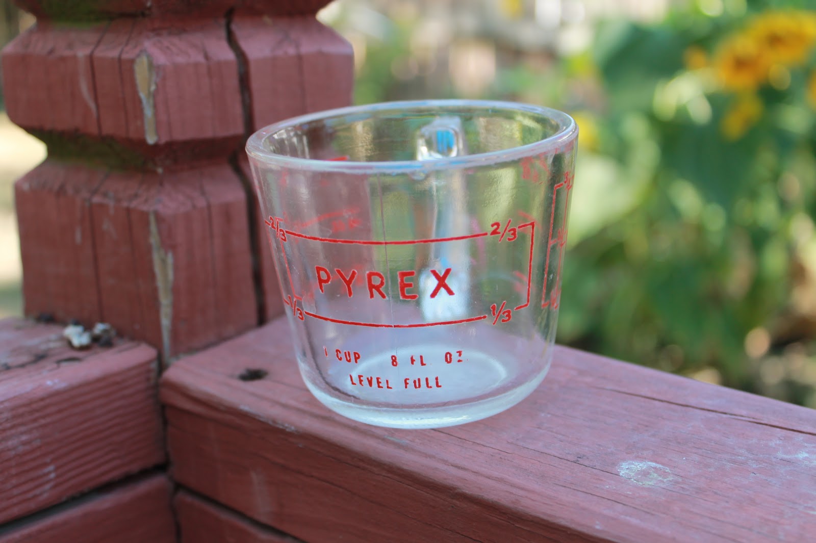 Dinner on Sunday evening featured some Pyrex! On a side note, if you don't have new Pioneer Woman cookbook, get one! We had the Rib-eye with Blue-Cheese Onion sauce, smashed potatoes, and roast cauliflower. Plus, we got a few ears of heirloom corn (Country Gentleman) out of our garden. You can also see some of my Corelle dishes in the photo and one of my favorite pieces: the Spring Blossoms salt and pepper shakers!