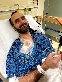 In the Leukemia world, Day 0 is transplant day, a second birthday, a re-birthday if you will. After some pre-meds (that made Kurt pretty drowsy), the transplant team brought up the frozen stem cells. This beautiful gift from a stranger in Europe arrived in Lexington, bringing hope and new life. We are so incredibly thankful for Kurt's donor and his sacrifice of time, comfort, and stem cells to save Kurt's life.